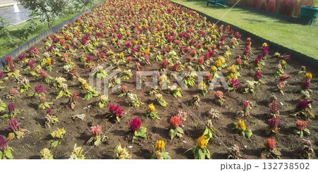 五月の花サルビア、ペチニア、マリーゴルド、バーベナ