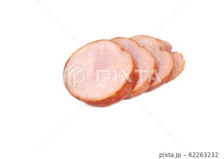 Chicken ham, and slices of tasty chicken meat , isolated on white background