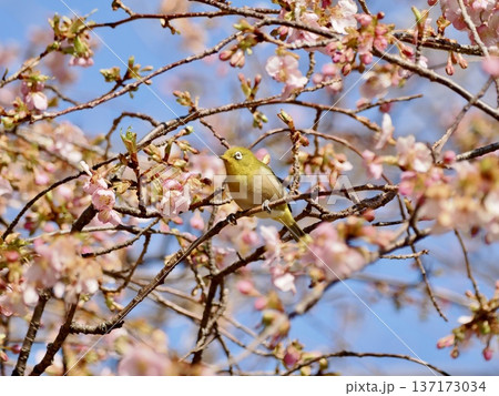河津桜に来たメジロ