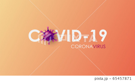 Covid-19 and coronavirus texts with virus purple cell icon on orange background.