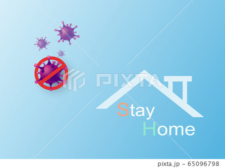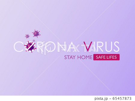 Coronavirus(covid-19) virus cells with purple background and stay home campaign logo to reduce infection and stay safe for life.