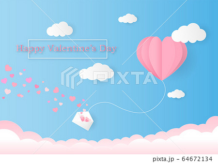 Pink heart air balloon floating on blue sky background,Happy valentine's day, love and paper art concept.Love and romance sweet card of paper cut style.