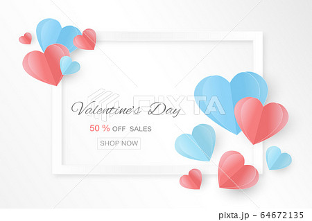 Heart shapes paper cut style for valentine's day sale white background,invitation and brochure template.Off sale for shopping at shop.