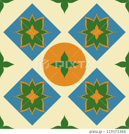 Untitled Artworknavi blue moroccan flowers geometric abstract pattern. Seamless background