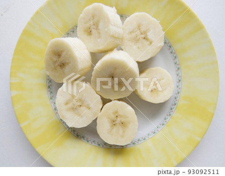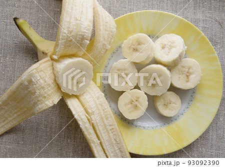 Banana bunch and peeled pieces