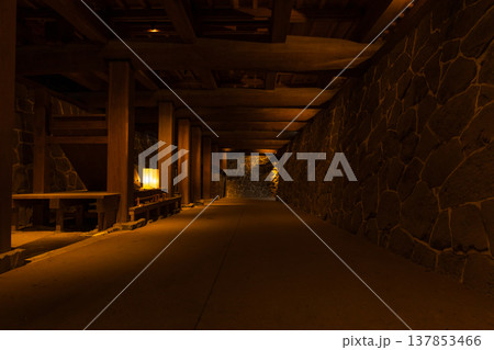 秋の熊本県熊本市 日本100名城 熊本城 闇り通路