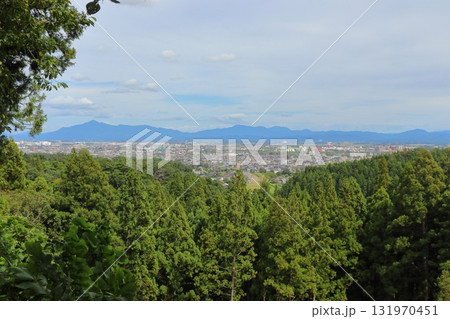 津山城本丸の藤棚から見た津山市街の風景(南向け津山駅方面)
