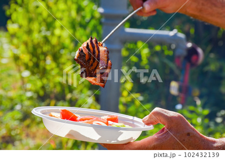 Garden bacon roasting at summer.