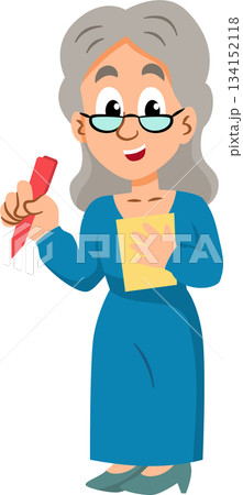 A woman is holding a pencil and smiling. Teacher.