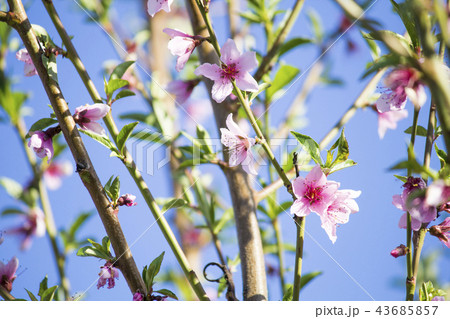 Flowering peach tree. Flowering branches.