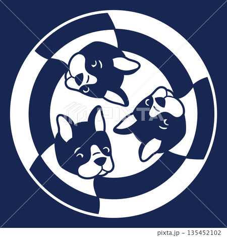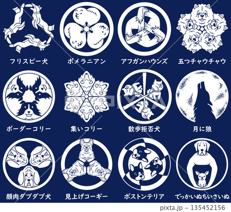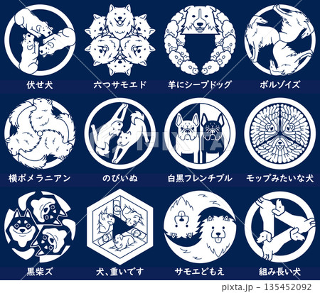 家紋風アイコン 犬 フレンチブルドッグ ボーダーコリー サモエド 日本の紋章