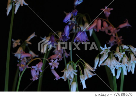小さな淡い色の花 黒背景 ブルーライティング 3