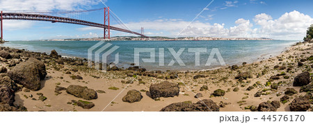 Panorama of 25th of April Bridge, Lisbon, Portugal
