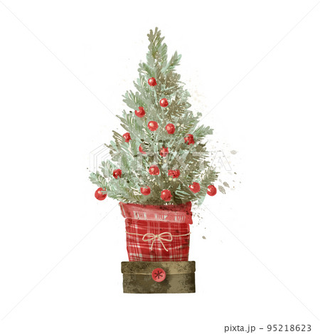 Watercolor colorful Christmas tree. Digitally painted illustration. . High quality illustration