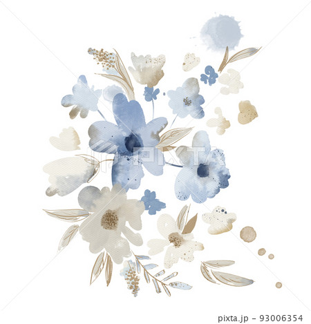 Watercolor blue flowers bouquet. Hand painted illustration. High quality photo