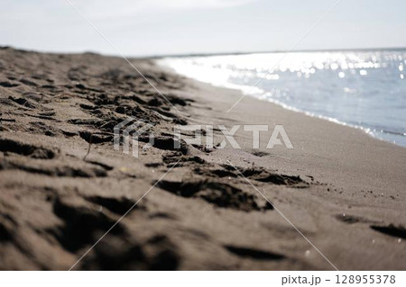 波打ち際の浜辺が日光でキラキラ光る様子2
