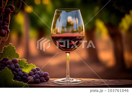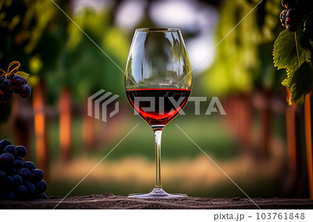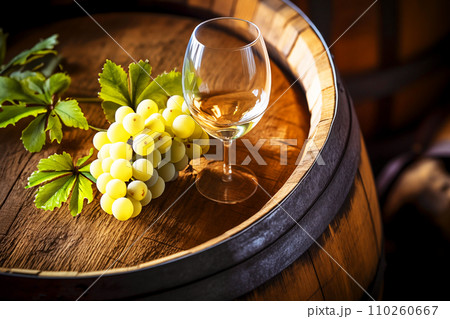 Wine Glass with Chardonnay Grapevine tasting. Vino Degustation in wine cellar.