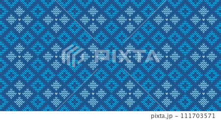 Sweater knitting pattern, Vector ethnic embroidery geometric background, Knitted abstract beautiful style, Blue pattern template motif, Design for textile, fabric, batik, tile, aprons