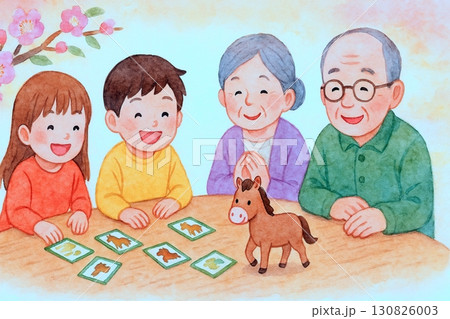 お正月に家族で遊ぶ干支の馬カードゲーム