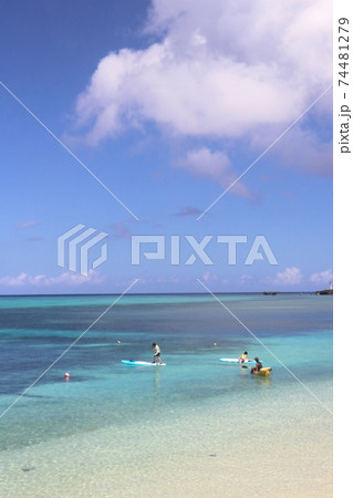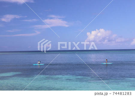 沖縄県本部町備瀬海岸エメラルドグリーン青い海でシーカヤック体験観光