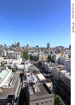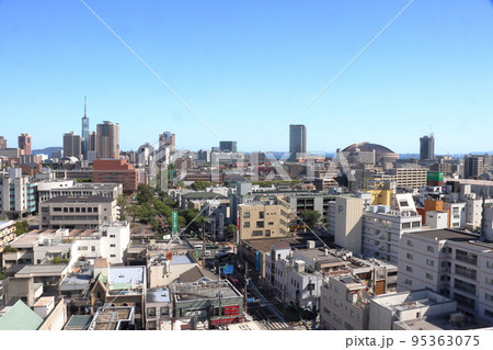 福岡市早良区市街地から見るペイペイドーム福岡タワー縦