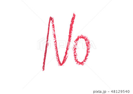 Word no written with lipstick and isolated on white.