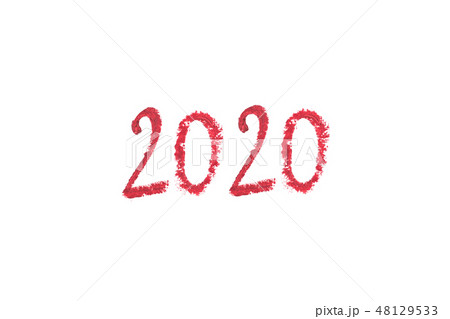 Delicate lipstick drawing 2020 isolated on white background.