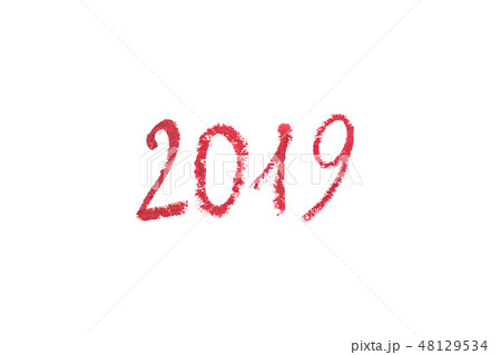 Delicate lipstick drawing 2019 isolated on white background.