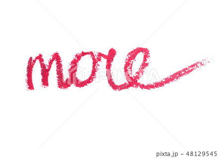 Word more made with lipstick and isolated on white.