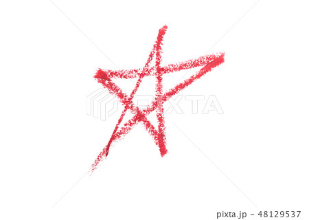 Delicate red textured lipstick stroke shaped star and isolated on white.