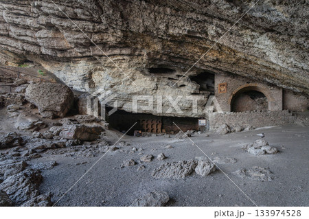 A rocky grotto with stone arches on the Golitsyn Trail in Novy Svet