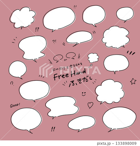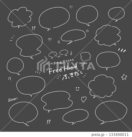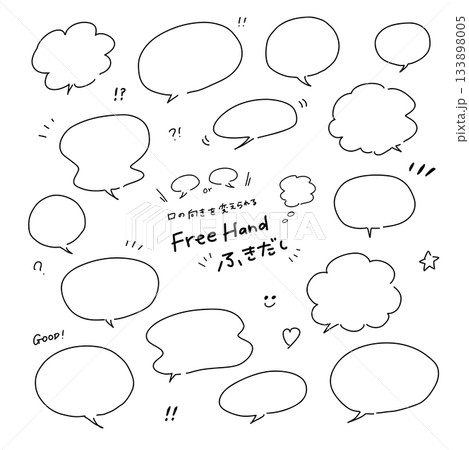 【細字ver.】手描き文字あしらい感嘆詞ふきだし記号セット【白線】