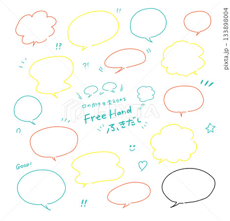 【細字ver.】手描き文字あしらい感嘆詞ふきだし記号セット【ポップカラー】