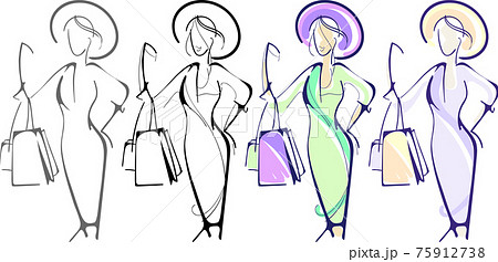 Sketches of a slender girl. Vector illustration isolated on white background.