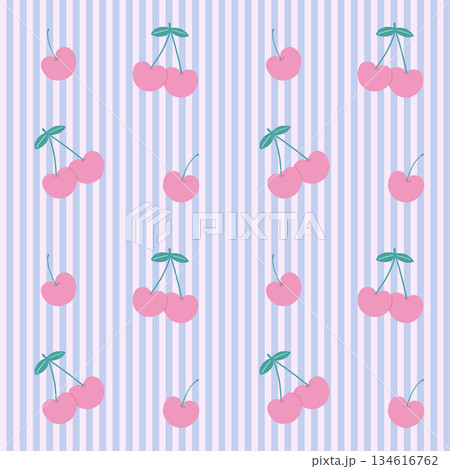ブルーとピンクのストライプとコロンとしたチェリーのパターン