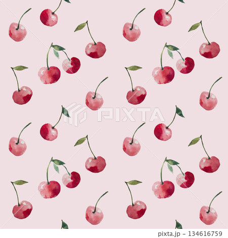 ペンで描いた淡いピンクのさくらんぼのシームレスパターン