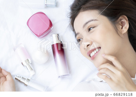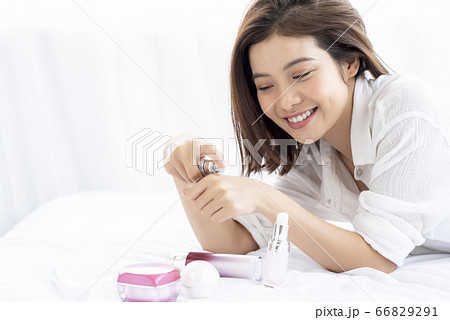スキンケアをする若い女性