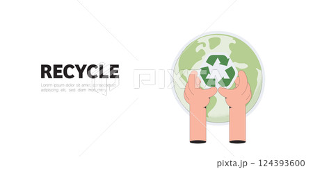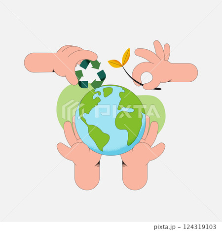 Hand holding Earth globe with recycle symbol. Earth Day, World Environment Day. Recycle concept. Sustainable ecology and environment conservation concept design. Vector illustration.