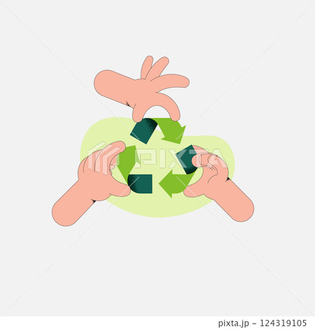 Hand holding Recycle symbol. Recycle and renewable energy concept. Sustainable ecology and environment conservation concept design. Vector illustration.