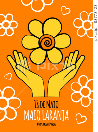 May 18 is National Day Against Sexual Abuse and Exploitation of Children in Brazil. Orange banner for Maio laranja with flowers