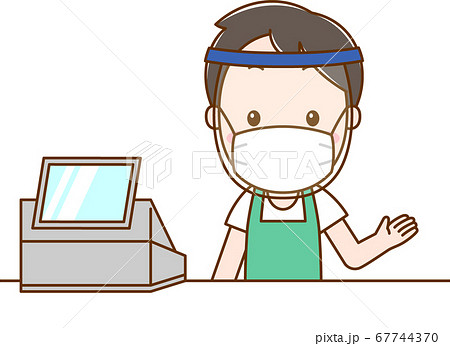 レジの男性_フェイスシールド