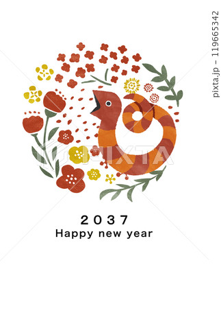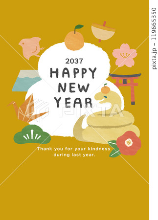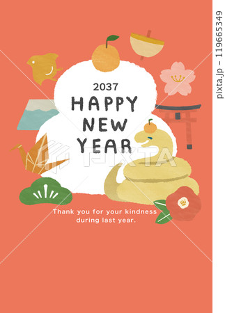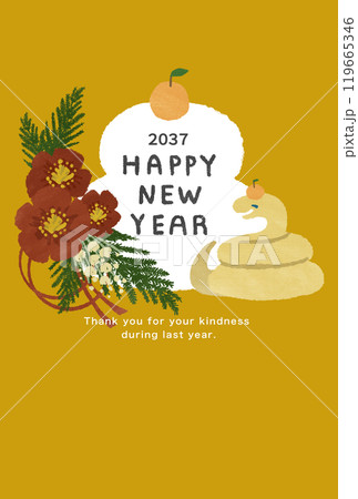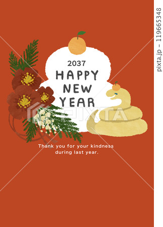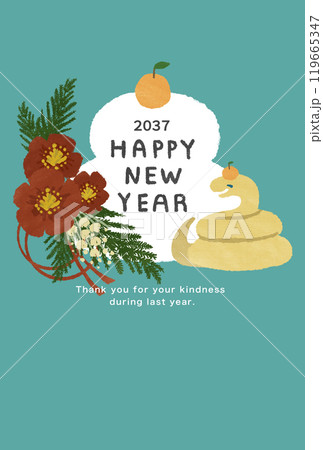 2037年 巳年 年賀状テンプレート