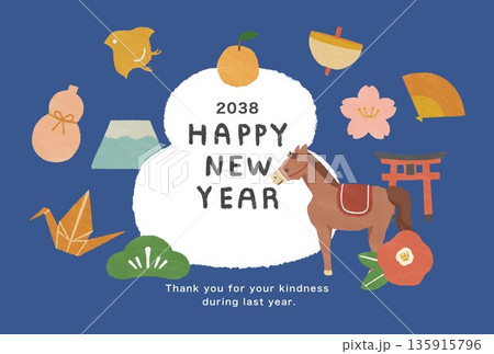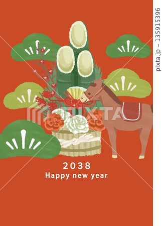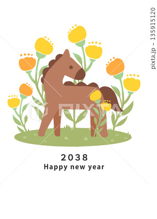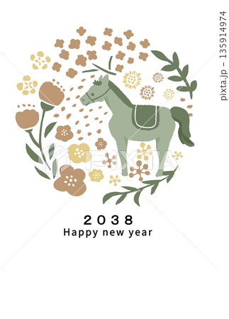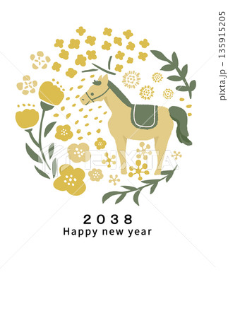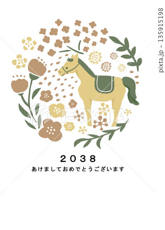 2038年 午年 年賀状テンプレート