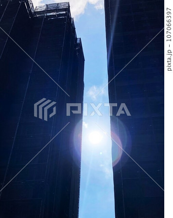 うろこ雲と工事中のビル
