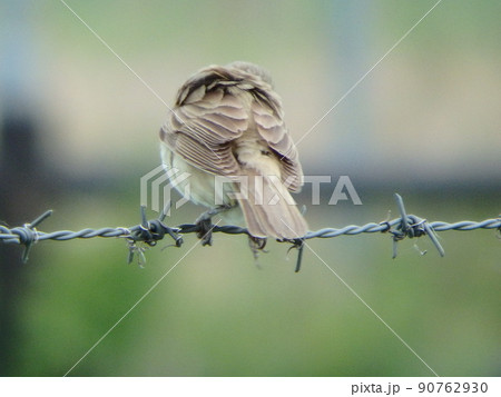 フェンスに掴まり遠方を見ていたオオヨシキリ