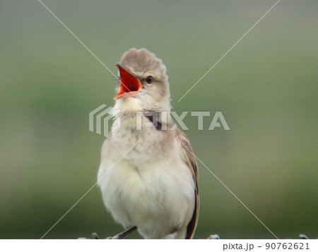 オオヨシキリがくちばしを大きく開けてさえずっている様子