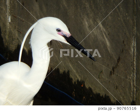 2本の長い飾り羽が頭にある繁殖期のコサギ