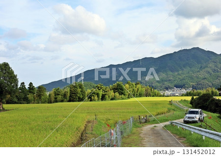 脊振山系をバックにして埴安神社の手前に広がる稲作