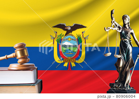 Law and justice in Ecuador Statue of themis and the gavel of the judge against the background of the flag of Ecuador Law and justice concept