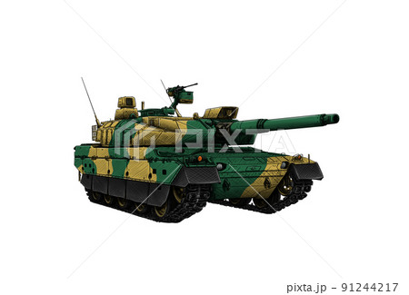 Japanese main battle tank of the new generation in camouflage. The latest self-propelled armored vehicles.